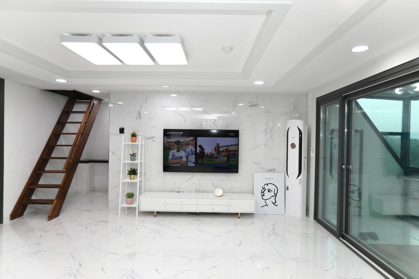 Guesthouse ni kitorang book through Airbnb. Masyaallah sumpah lawa. Disebabkan rumah ni, aku jadi gila cream & putih. Sebelum sampai tu, kitorang mati-matian ingat rumah 2 tingkat, rupanya penthouse yang ada attic. Ada 3 bilik tidur, 2 bilik air dan 1 bilik mainan(?) kat attic. Kitorang lupa actually, driver ada sekali dengan kitorang, jadi kena provide bilik untuk dia juga. Tiga bilik bawah dah penuh. Kitorang seramai 9 orang tau plus driver jadi 10 orang total. Takkan kitorang the perempuans nak tido kat ruang tamu. Kalau tiada driver, boleh je bentang futon depan TV tu. Terpaksa kitorang tidur kat bilik mainan atas kat attic. Heater pula tak sampai atas. Kitorang pakat ambil 3 selimut untuk setiap seorang balut diri supaya tak kesejukan. Nostalgic gila rasa waktu tu. Macam rasa kat kampung nak raya, tido dengan cousins ramai ramai berderet. Rindu!